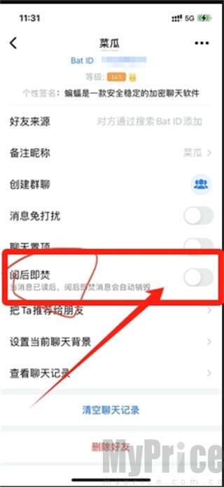 蝙蝠app怎么设置阅后即焚