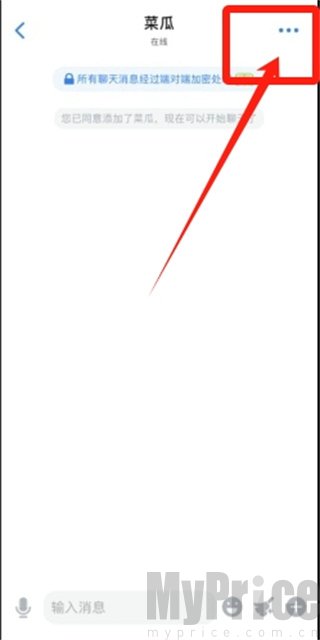 2、在搜索栏中输入并打开想要进行设置的好友对话框,点击右上角的更多菜单。
