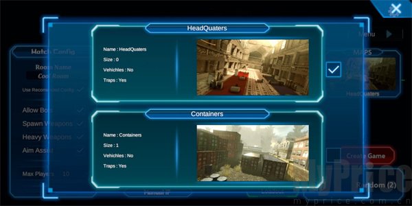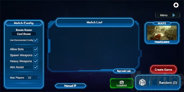 左侧区域可自由调整房间人数和初始武器配置