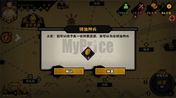 【陨铁】:开局及后每5年出现一次陨铁锻造神兵的机会,至多锻造5次,国家初始及后续每5年获得1个铁,至多5次【若时代没有铁则会替换】